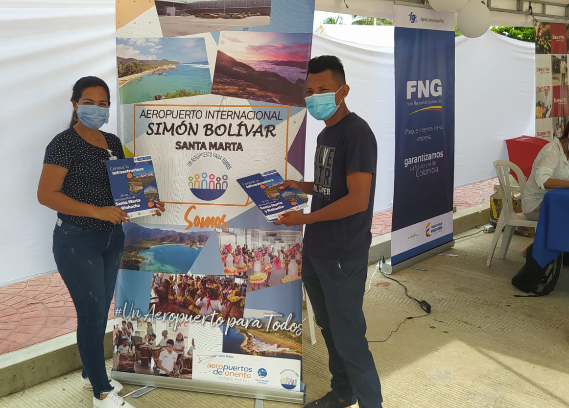 En su stand, socializamos a los asistentes el trabajo y gestión que la Concesión ha venido realizando en los aeropuertos Simón Bolívar de Santa Marta y Almirante Padilla de Riohacha. Así mismo, atendimos las necesidades de as comunidades para formular nuevos proyectos en el marco del Programa Un Aeropuerto Para Todos, en su eje temático de Responsabilidad Social Empresarial, RSE.