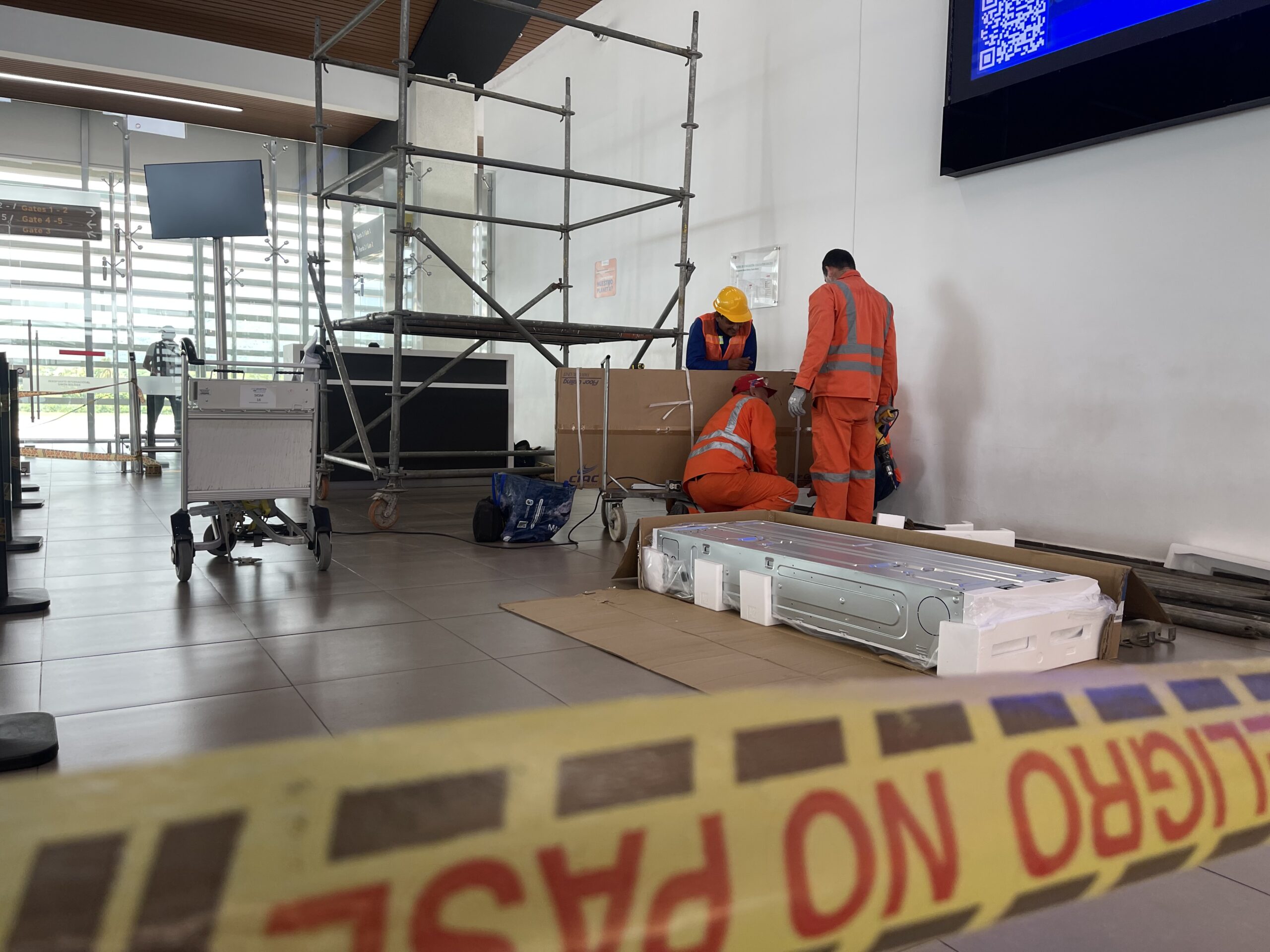 - Se comenzó la instalación de seis equipos de aire acondicionado, de cinco Toneladas de Refrigeración cada uno, en la Sala de Abordaje Nacional.