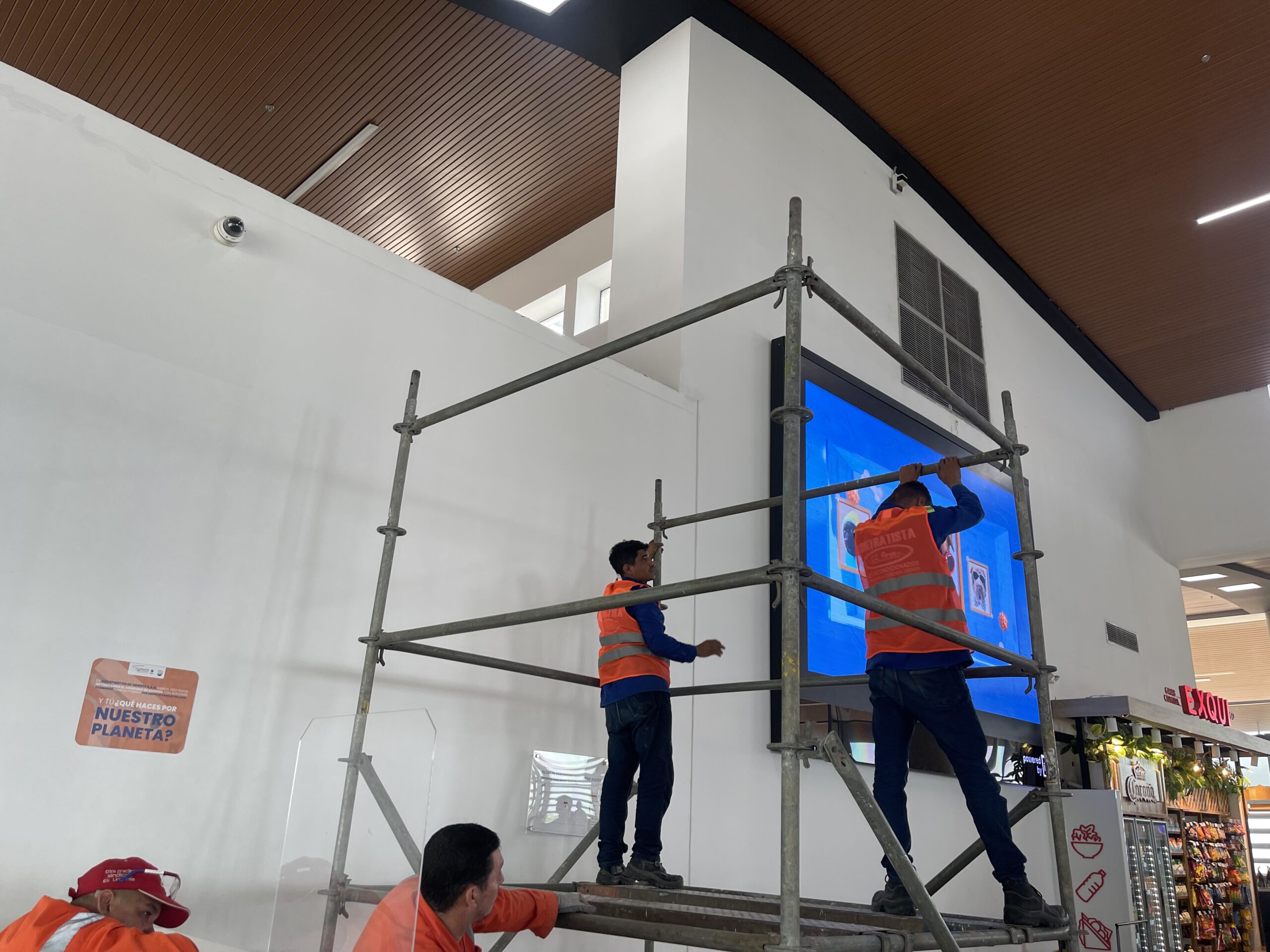 Santa Marta, Magdalena. Julio 12 de 2023. La Concesión Aeropuertos de Oriente S.A.S., informó que se inició la instalación de seis equipos de aire acondicionado, de cinco Toneladas de Refrigeración cada uno, que permitirán aumentar en un 50 % la capacidad del sistema de climatización actual de la Sala de Abordaje Nacional del aeropuerto internacional Simón Bolívar de Santa Marta.