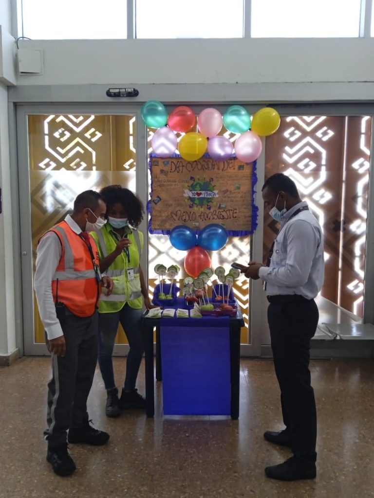 En el marco de la celebración mundial del Día del Medio Ambiente, en el Aeropuerto Almirante Padilla de Riohacha ubicamos un Stand lúdico – educativo sobre la importancia de cuidar nuestro planeta. Aprovechamos para obsequiar frutas y recordatorios a los pasajeros y usuarios del terminal aéreo.