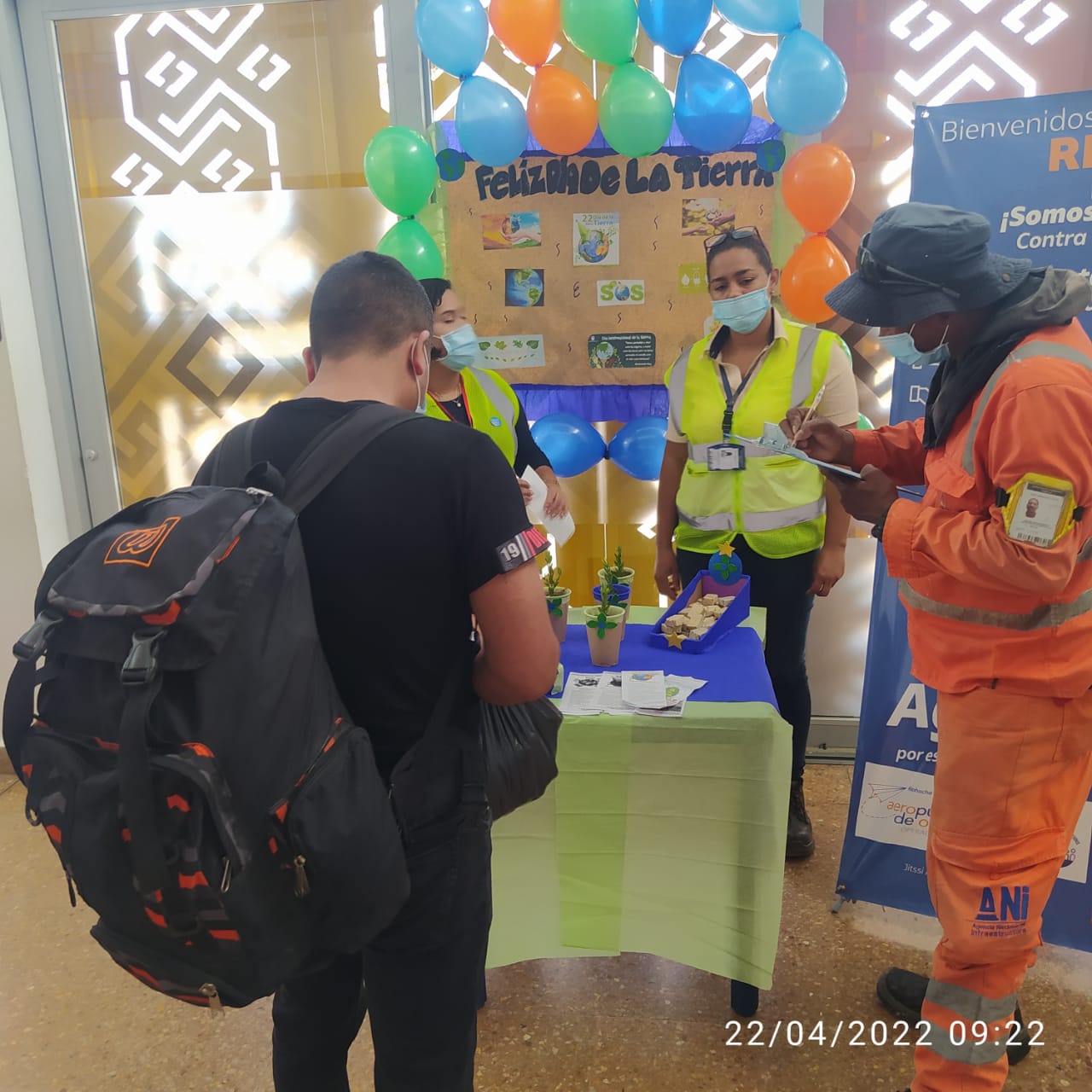 Finalmente, la celebración se extendió hasta el aeropuerto internacional Simón Bolívar de Santa Marta, en el cual, por medio de un video didáctico y educativo transmitido en las pantallas de sus instalaciones, se realizó una sensibilización sobre la importancia de cuidar el planeta. Además, se obsequiaron folletos alusivos a la temática del Día Mundial de la Tierra, datos curiosos y recomendación generales para toda la comunidad aeroportuaria y comercial.