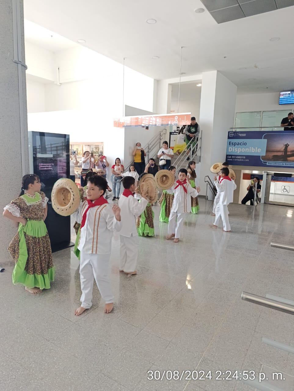 Los pasajeros y visitantes del aeropuerto tuvieron el placer de presenciar una actuación extraordinaria mientras esperaban sus vuelos. Los talentosos niños y jóvenes de la Escuela deleitaron al público con sus vestuarios, música y excelente coordinación.