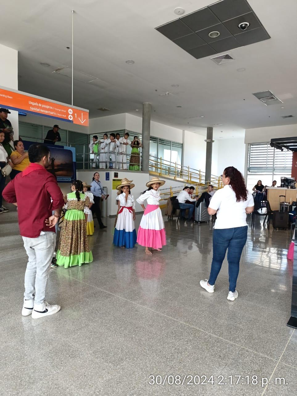 El Aeropuerto Yariguíes se convirtió en el escenario de una emocionante promoción cultural y el destino, en colaboración con la Institución Educativa los Laureles. El evento contó con la presentación del grupo de danzas de la escuela en mención.