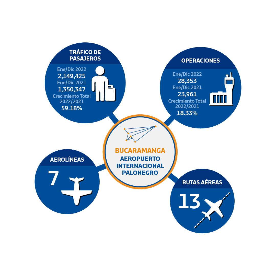 En la primera quincena del 2023, se logró un crecimiento del 13 % en pasajeros movilizados entre los seis aeropuertos, en comparación al mismo periodo del 2022. Los terminales aéreos de Cúcuta, Riohacha y Barrancabermeja incrementaron sus viajeros en doble dígito, lo cual indica cómo sería su comportamiento para el presente año. Estas son las cifras: