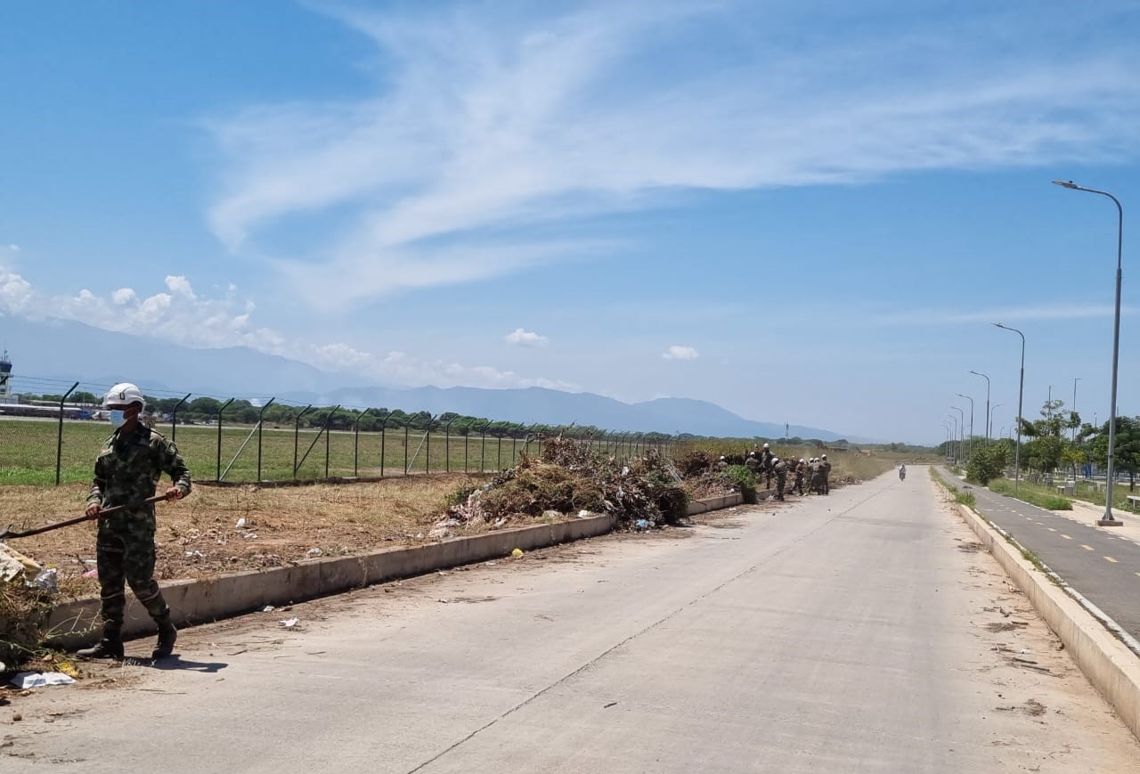 La jornada de aseo contó con la participación activa de empleados del aeropuerto, miembros de la Aeronáutica Civil, funcionarios de la Alcaldía Municipal, valientes soldados del Batallón de Ingeniería y, lo que es aún más inspirador, la comunidad aledaña que se sumó.