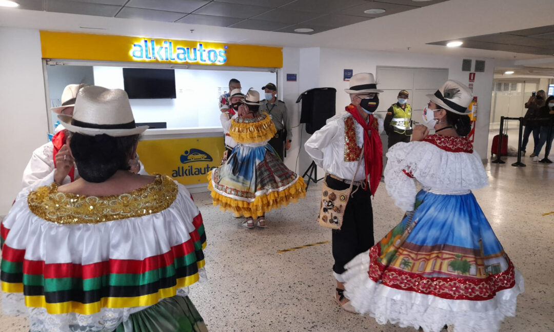 Recibimos a los pasajeros del aeropuerto internacional Palonegro con música y baile