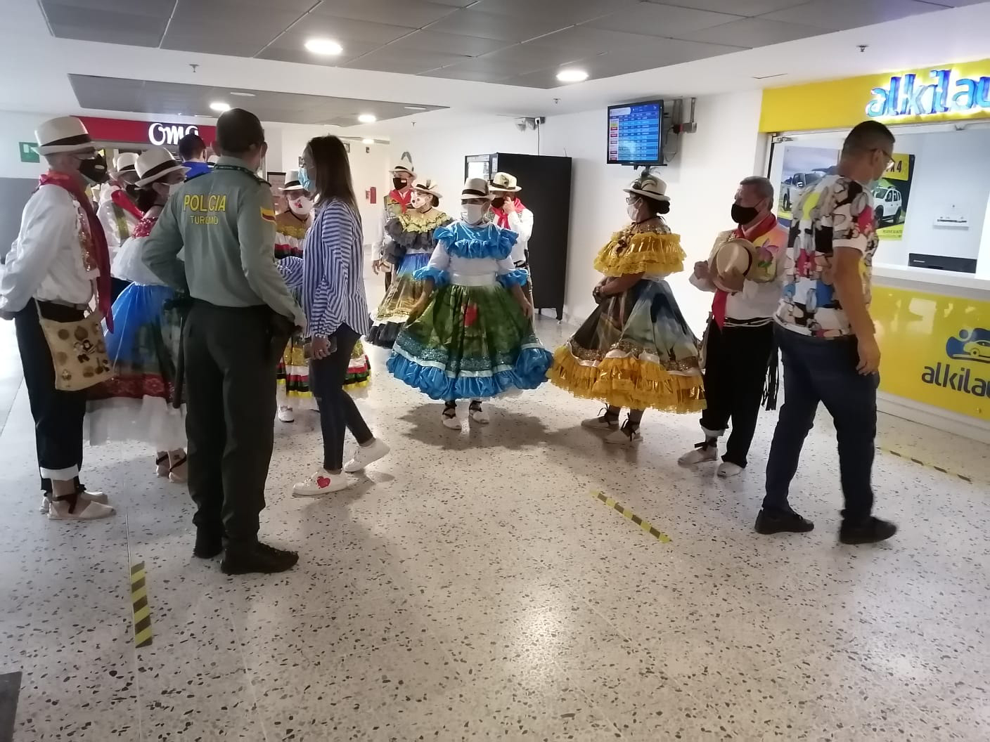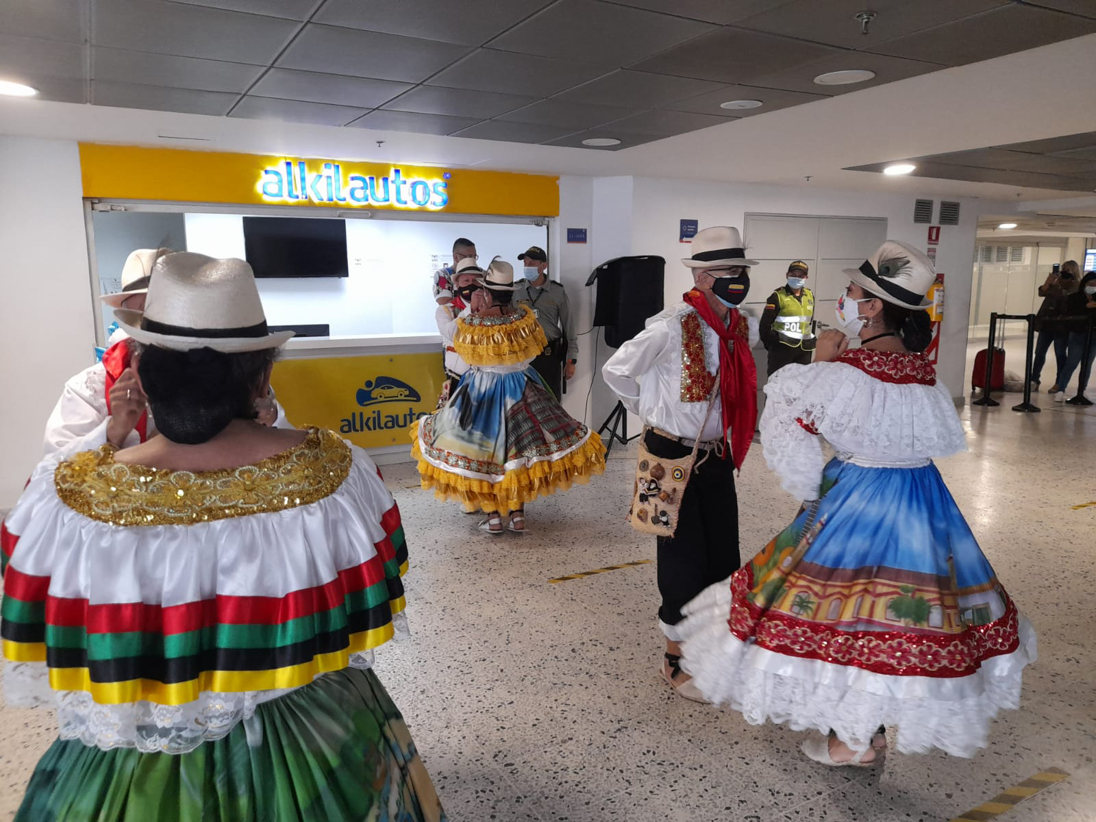 Recibimos a los pasajeros del aeropuerto internacional Palonegro con música y baile
